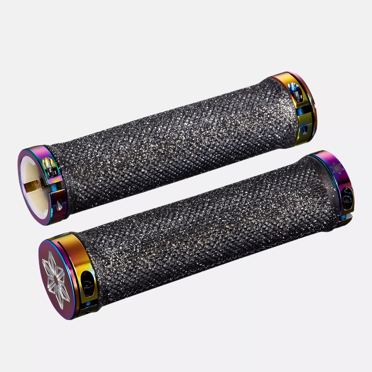 El dibujo de diamantes de los OG ofrece el control perfecto con la cantidad justa de sensibilidad para mantener tus manos frescas. Terminado en los extremos con las bonitas abrazaderas de aluminio lisas tipo aceite. El agarre es como ningún otro y es una necesidad absoluta para todo ciclista.