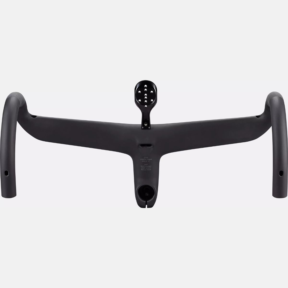 LIGERO Y RÍGIDO eliminar la tapa de la potencia y los tornillos, el Cockpit Rapide es 50 gramos más ligero (en medida 100mm x 420mm) que una combinación de manillar y potencia Rapide de dos piezas. Fabricado con fibra de carbono premium de alto módulo, que proporciona una rigidez ideal para los velocistas más voluminosos y rápidos del World Tour, el Cockpit Rapide tiene la mayor relación rigidez-peso que cualquier sistema de manillar y potencia en dos piezas que hayamos fabricado hasta ahora.