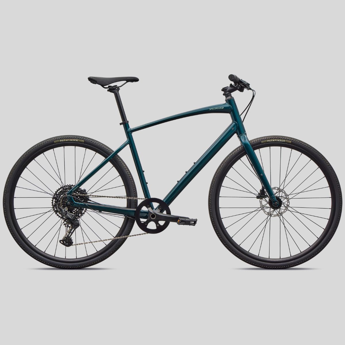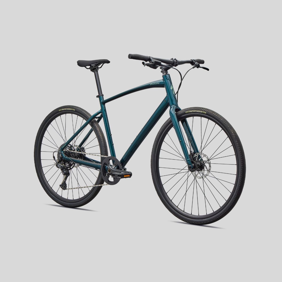 Specialized A1 Premium Aluminum, Fitness Geometry, butted tubing, internal cable routing, flat-mount disc, quick-release, Plug + Play rack/fender mounts