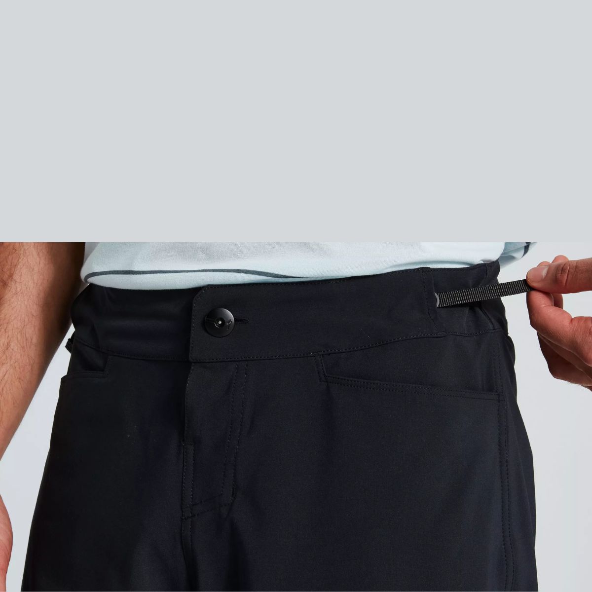 - Las lengüetas laterales de la cintura aseguran que el ajuste sea fácilmente personalizable, incluso cuando llevas los bolsillos cargados.